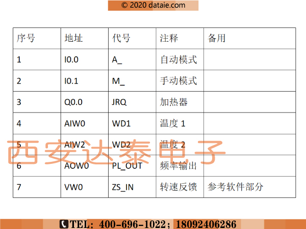 上表内容可在程序中的符号表中实现,这样我们在编写程序的时候就不需要再对应图纸查找IO地址,只需要调用代号就可以。这样做不仅方便快捷而且在多点数的工程中不易出错。还有一个好处就是在IO地址发生变化时我们只需要把第二列地址栏的地址做更改,程序不需要做任何改动仍然可以正常运行。这样做是不是很方便?